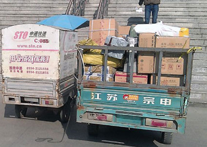 图一:快递公司送走“双11”迎来“双12”,年终到了,多数快递员的车上,天天都装满了货。