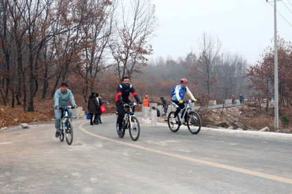 12月16日下午,记者沿舜耕山环山路行走的时候,每走不过百米就会遇到蹬自行车转山的骑友。在洞山隧道上方,一组停车休息的骑友主动和记者打招呼,让记者帮助他们拍下与舜耕山环山路的合影照。骑友金先生告诉记者,得知舜耕山环山路合淮路东侧路段贯通后,他们差不多每天都过来骑上一圈。金先生说,他和几位骑友都是自行车骑行爱好者,10多年来,他们最大的梦想,就是能够骑着自行车在舜耕山上穿行。现在,舜耕山环山路的修通,让他们的梦想变成了现实。
