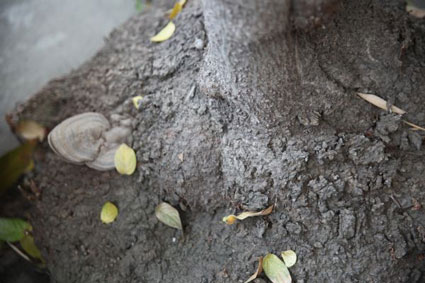 近日,家住大通区九龙岗镇淮南村41号朱小塘家的腊梅树下长出了灵芝。