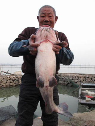 王顺林介绍,这条沟鲶有20来斤(如图),沟鲶一般在池塘养殖,达到商品鱼的规格就被起获了,一般不会长到这么大。只有跑到窑河这样的大水面的沟鲶才能长这么大,看样子,估计已长有5年多了。