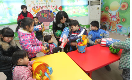 1月14日上午,田家庵区第四幼儿园的师生们带着玩具、奶粉等各种物品来到市社会福利院,为那里的孩子们送去一份爱心,祝愿福利院的孩子们在新的一年里快乐成长。