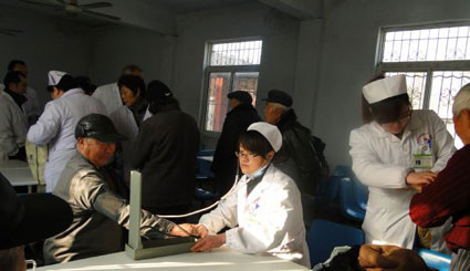 图为:医生们在为老人们做体检(毛集二院提供)