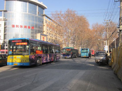 由于龙王沟中下游水系淮舜北路(湖滨路至青年路)段从2013年11月26日开始全封闭施工,多条公交线路受到影响。