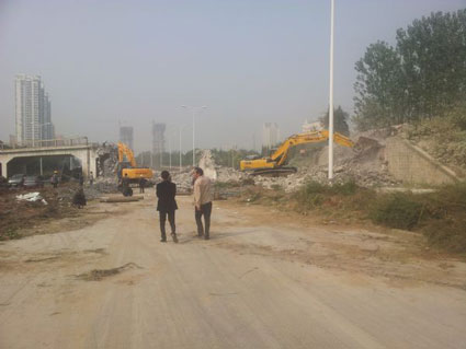 图三:洞山东路铁路桥拆除时的情景。