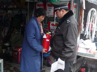 为防范春节元宵节期间一些商铺、摊棚集中区出现火灾,八公山区城管执法局专门购置了灭火器分发到商贩手中。截止到2月11日,该局已经累计向商棚集中区免费分发了50个灭火器,并做了多场有关火灾防范及灭火器使用方法的宣传活动。领到灭火器的商贩高兴地说:“这是我们马年收到的最中意礼物。”
