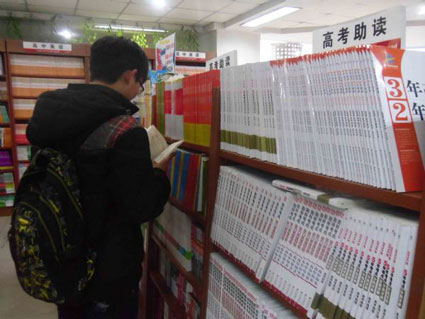 “人太多了,都挤不进去了。” 17日中午放学后,十几名学生拥进田区十六小附近的一家教辅书店。记者看到,小小的书店里摆满了各种教辅书。从作文书、习题全解,到提优训练、试卷,品种丰富,购买者络绎不绝。