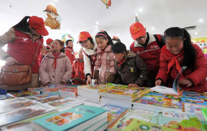 3月4日,在淮南供电公司青年志愿者的带领下,10名潘集区泥河镇店集小学“光明驿站”的留守儿童走进淮南市新华书店,开心地选购他们的新学期礼物——自己喜爱的书籍和学习用品。