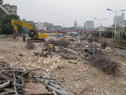 为配合淮南市广场路下穿阜淮线立交桥扩孔工程项目,从1月下旬开始,老“蓝宝大酒店”开始拆除,目前,江陈大厦“蓝宝大酒店”主楼及南端六层居民住宅楼已全部拆除完毕。5月5日,记者在现场看到,拆除工作已进入扫尾清场阶段(如图),以利下一步拓宽工程展开。
