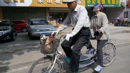 “我想就这样牵着你的手不放开,爱能不能够永远单纯没有悲哀……我想带你骑单车……像这样的生活,我爱你,你爱我”一曲曾经红遍大江南北的《简单爱》,描述着对朴实爱情的向往。在淮南市谢家集区望峰岗有位70岁的昂先生,五十年来和爱人过着简单爱的生活,骑着双人自行车,走遍大江南北。5月20日是网络情人节,民间流传的表白日。昂先生像往常一样和老伴一起骑着单车,从望峰岗到火车站苏果超市买菜,昂先生告诉记者,这一来一回30公里,他俩每天都骑。上坡的时候老伴累了,他就多使点劲。昂先生的爱人告诉记者,她身体不如昂先生。5年前,他们买了一辆双人自行车,为的就是可以两人一起,继续骑行生活,继续周游全国。要是没有他,没有双人自行车,她这个年龄估计自己很难独立骑自行车出行了。据昂先生和爱人的描述,这几年,他们骑着双人自行车去了北京、上海、福州。即使哪都不去,每天也要骑上好几十公里。“520”日阳光灿烂,昂先生和爱人一路骑车远去,充实的人生,简单朴实的爱情,坚持下去,令人敬佩!