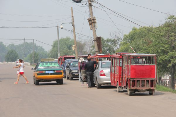 接电后,记者于7月8日上午来到了沿淮路,在轮船码头附近,记者远远就看见几辆红色的正三轮摩托车和几辆私家车整齐地停靠在路边,而这几辆私家车中,竟然在前挡风玻璃的位置,安装了只有出租车才有的空车灯。于是记者装作需要乘车和这些车主攀谈,经过了解,这些车辆在这里确实是用来营运的,主要是把从渡口下来的乘客拉到市区。