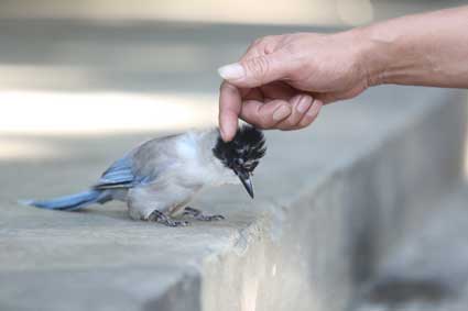 图一:“莎莎”不怕人,路人伸手抚摸它。