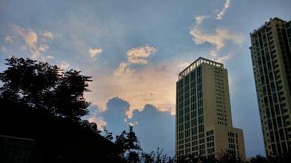 7月30日傍晚的一场暴雨,给市民带来一个清凉夏夜。暴风雨来之前的美丽云彩,也给很多正行走在下班路上的市民带去美丽心情。图为7月30日下午6时朝阳西路上,行驶在下班路上的记者用手机记录下这美丽的云彩。