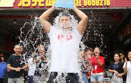 全球火爆公益募捐活动——冰桶挑战接力到淮南。8月18日,北京瓷娃娃罕见病关爱中心发起了中国的冰桶挑战,淮南市民闻讯纷纷关注此微博,并接受冰桶接力挑战。20日下午,几位淮南“勇士”挑战冰桶接力并录制下视频上传微博。下午4时,位于田区淮滨路金湾名街门口,李先生和他的几位好友一起,用加了大量冰块的水从头浇下。这一行为引得很多市民前来围观,经常使用微博的年轻人一看就知道这是最近全球最火爆的冰桶接力。李先生告诉记者,他在微博关注了“瓷娃娃罕见病”中国的冰桶挑战,之前也关注了国外的“ALS 渐冻人”募捐的冰桶接力。一直工作在健身房的他认为自己有个结实的身体,完全可以胜任这个挑战。他希望通过这样的挑战为“瓷娃娃罕见病”募捐出份力。