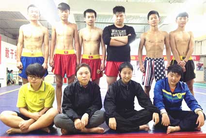 图:参战省十三运武术(散打)比赛正在训练的主力队员