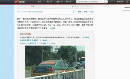 图为:网友通过微博向交警反映一辆出租车逆行,得到交警及时回应。