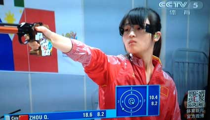 北京时间9月20日上午8时,淮南女孩周庆媛携手队友射落2014年仁川亚运会首金,她还取得了个人女子10米气手枪第4名的好成绩。