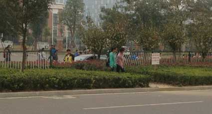 10月20日11时50分左右,正值学生放学时分,记者来到淮南二中门前,发现这3条人工小道的南北两边不知何处安插了牌子,是由淮南二中提醒学生从人行道过马路,做文明的二中学生,牌子立在小道上很是明显。可当学生如潮涌般冲出校门时,这些牌子就被淹没在人群当中,“寻”不见踪影了。