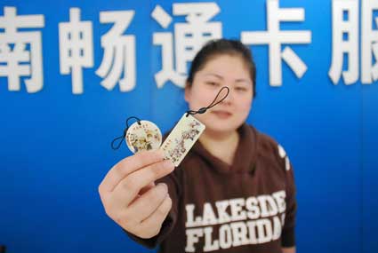 为了满足广大乘客尤其是年轻人的消费需求,淮南中北巴士公司结合多个城市的先进经验,推出具有淮南历史特色的IC“异形卡”。本次发行的公交“异形卡”有两款,一种是圆形透明滴胶式异形卡,另一种是长方形滴胶卡,大小为普通卡片的四分之一左右,厚度为普通卡片的3倍,异形卡样式小巧、可爱。和普通的IC片相比,其最大的优点是便于携带、不易丢失。不仅卡片厚实耐磨、不易折断,而且卡片看起来非常精美,可当作手机、钥匙等物品的小挂件。市民可将卡挂在手机、钥匙或背包上。