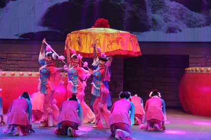 图为:花鼓灯风情歌舞剧《俺爷爷的花鼓灯》