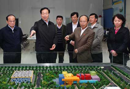 图为省委书记张宝顺来到中科院淮南新能源研究中心实地调研,详细了解项目建设进展情况。
