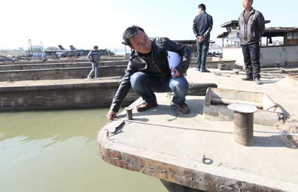 11月6日上午,暖暖的阳光洒在淮水之畔的田家庵六号码头周围。淮堤近岸并排停放着5艘待拆解的渔船,以这些渔船为界,一边的岸上机器轰鸣,砸船声不绝于耳,另一边的河面流水汤汤,舟楫如梭。