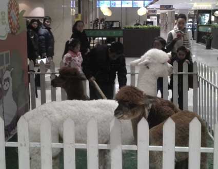 12月7日某商场内圈养的羊驼引得顾客纷纷围观。据悉,羊驼原是生长在美洲的一种动物,因其憨态可掬、长相别致,近年来受到了网民的热炒被誉为“神兽”、“萌兽”。一些围观羊驼的顾客告诉记者:他们来逛这家商场的主要目的就是想看看羊驼,它的魅力确实堪比明星。