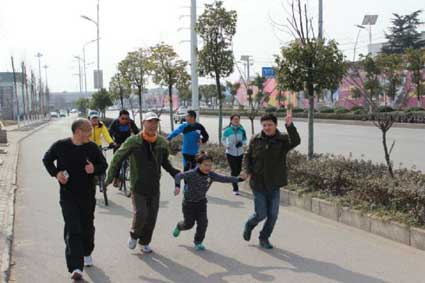 羊年伊始,户外爱好者就纷纷举办健身拜年活动。2月19日,大年初一,中国白丝带志愿者淮南服务站的30多名志愿者相约一起跑步,在户外跑步中向沿途居民拜年,在锻炼中揭开了乙未羊年的序幕。