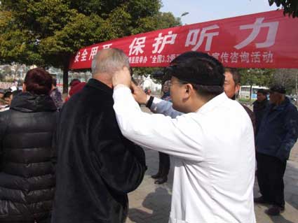 活动现场,医生们摆开长条桌,拉起“爱耳日”的宣传条幅,就市民们提到的健康问题进行了耐心解答。除此之外,医生们还利用携带的医疗设备,现场为市民做耳道等检测。新康医院的耳科医生告诉记者:从他们接诊情况来看,除老年人易患听力疾病外,近年来青少年听力受损情况也呈上升趋势,其中造成青少年听力受损的原因多是戴耳机听音乐等外因造成的。
