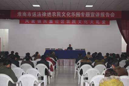 为了把党的十八届四中全会精神和法律知识送到千家万户,进一步在广大农村兴起学习全会精神、传播法治理念、普及法律知识的热潮,根据省委宣传部的统一安排,3月3日和3月4日,市委宣传部在淮南市首批省级农民文化乐园——凤台县凤凰镇芮集村农民文化乐园和潘集区平圩镇谢圩村农民文化乐园先后举办了“送法律进农民文化乐园”专题宣讲报告。两个镇机关工作人员和各村干部、群众等聆听了报告。