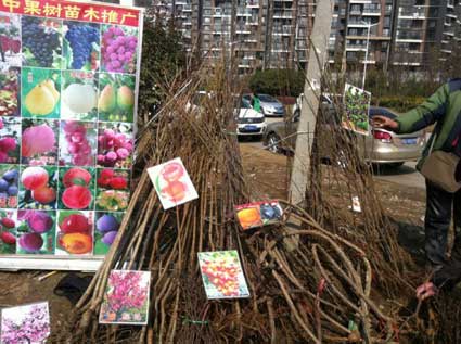“这不是植树节要到了吗,肯定得种棵树啊,这是为绿化做贡献呢。我是在自己家门口种树,肯定不会种什么杨树、柳树的,还是果树好,结出果实还能自己吃呢。”一位正在购买果树的秦先生告诉记者,他所住的小区刚开始都没什么植物和树,绿化率很低,这几年树木蹭蹭地都长起来了,“桃树、葡萄树、樱桃树、山楂树,好多好多,都是居民自己种的,房前楼后都有很多空地,一到植树节就有不少人买果树在小区里种,有很多都结果实了,到了夏秋季节还是很繁茂的。”