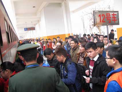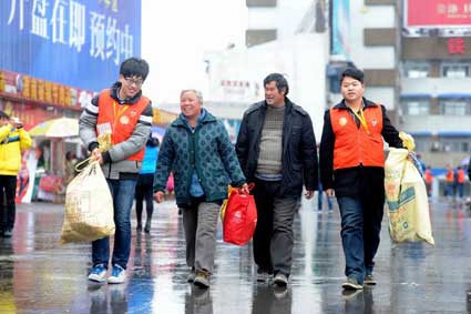 春运首日,在淮南、淮南东、水家湖站开展首日系列活动。组织客运工作人员举行宣誓仪式,动员职工以良好的士气投入春运,组织青年志愿者向旅客发放列车时刻表及乘车小常识2000余份、提供小药箱服务50余次。