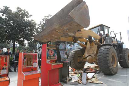 “我宣布:淮南市侵权盗版及非法出版物集中销毁活动现在开始!”4月20日上午9时30分,随着市委常委、市委宣传部部长、市委统战部部长、市“扫黄打非”领导小组组长陈儒江一声令下,市新华书店门前广场上铲车轰鸣、搅拌机翻滚,一件件非法音像光碟、书籍和一台台赌博机、游戏机顷刻间灰飞烟灭彻底销毁。