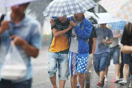 16日中午,大雨瓢泼,舜耕西路上,市民行走在雨中。从气象部门了解到,适当的降雨对午收后的夏种带来诸多益处。降雨后气温会迅速回升,未来一周我市天气将以多云天气为主。