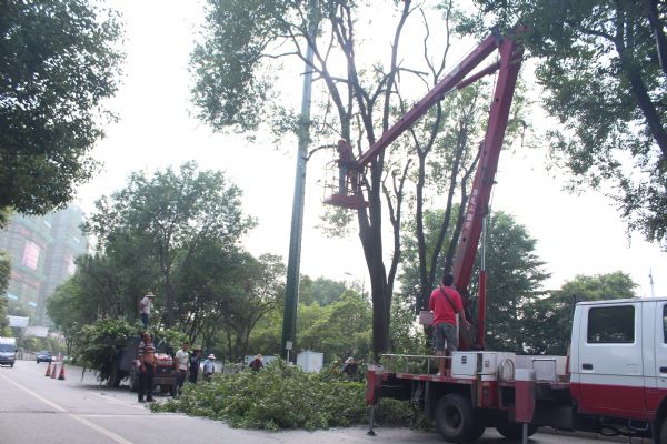 舜耕西路道路中央,上百棵枝繁叶茂的老榆树是道独特风景。然而,由于其长势繁茂,部分低矮的枝桠遮挡了行人视野,阻挡了部分车辆通行。若遇大风天气,榆树上一些枯朽的树枝还会像冰雹一样掉落,威胁行人安全。为了彻底解决这一问题,我市园林部门决定对这里的榆树进行“修身”。