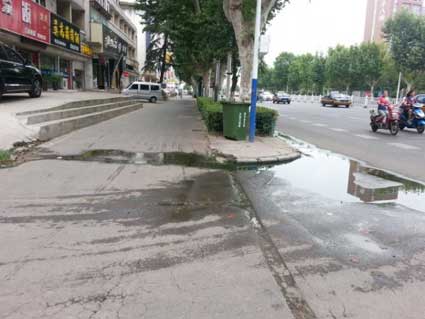 8月8日,有市民致电本报热线反映,在淮河大道北段西侧一汽车租赁店铺旁,有污水不断流向马路上,臭气难闻,影响市容环境,希望相关部门能及时处理。
