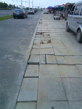 随后记者来到了高铁东站,在李先生的指引下发现在东站正对面右手边上的人行道上停满了随意停放的车辆,50多米长的人行道上大理石道板几乎全部破损,黄沙、泥土、破损的大理石碎块到处都是,行人根本无法正常行走。记者联系了淮南市城建服务热线,工作人员告诉记者他们将联系相关单位,尽快派人前去查看,如果破损严重将及时修复,并对市民李先生关心城市建设提出合理建议表示感谢。