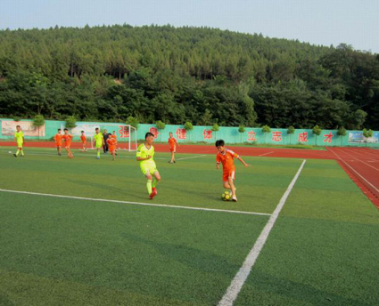 金岭中学,一个并不为人熟识的名字,却几乎拥有目前我市最完整的校园足球队,在这个只有600人左右的学生中,一共有三支足球队,小学一支,初中两支。8月14日下午,记者来到这个位于老龙眼水库边上的学校。时值下午3时半,阳光正热烈地抚摸着大地,金岭中学的足球场上呐喊阵阵,十几个小足球队员们正在举行对抗赛。记者观察,金岭中学紧靠舜耕山,除去一个带有五人制足球场的运动场之外,校园就显得很小了。据介绍,目前该校共九个年级,学生大都来自山南乡镇,有一部分是留守儿童。但这里的校园足球却开展得红红火火。虽然足球队刚成立不到四个月,他们已经在刚刚结束的淮南市阳光运动会足球比赛中取得了小学第六名,中学女子第三名的成绩,令人赞叹。