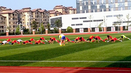 8月16日下午4时,淮南二中偌大的足球场上,一朵朵小花在“徜徉”,盘带、传球、过人,快若疾风、慢若闲步,几十个女足队员们个个球技娴熟。记者了解到,许多队员刚从秦皇岛参加全国比赛回来,没休息两天就回到了训练场。因为大家知道,只有通过更刻苦的训练才能超越全国第六名。“再逼紧点,出脚要快……”教练孙翔在一旁告诫着队员。不一会工夫,队员们的脸上已经大汗淋漓。孙翔向记者介绍,像这样的训练,暑假里每天下午大概进行两个多小时,这些小姑娘们既然选择了女足,就意味着基本没有寒暑假,没有周末了,只有比别人训练的更多一些,才能在比赛中跑得过、踢得赢。科学训练辅以埋头苦干,淮南二中女足从建队伊始就展现了高水平,不断代表淮南、安徽参加各类比赛,几年来,在安徽已成霸主,而去年在全国学生运动会上代表安徽甚至创下安徽省参加全国各类青少年足球比赛的最好成绩。今年在全国女子校园足球联赛中,淮南二中女足一路过关斩将,从分区赛打起,一直到总决赛,在几十支队伍中名列第六,展现了淮南校园足球的蓬勃力量。
