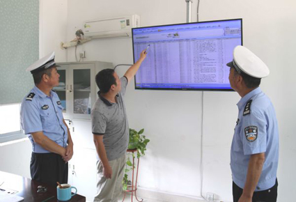 图:民警查看危化品企业车辆GPS实时定位情况。