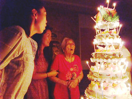 图:李老太太准备吹蜡烛