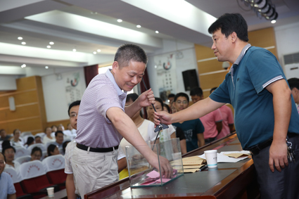 8月27日,田家庵区2015年秋季七年级“阳光分班”现场会在龙湖中学民生校区举行。全区12所中学的105位班主任通过“阳光分班”专业软件电脑随机摇号编班以及抽签的“阳光”方式,逐一拿到了新学年的各自班级号。分班现场,来自全区的60名家长代表及市区教育部门相关负责人全程参与了监督。图为“阳光分班”洞山中学的班主任们正在抽签。