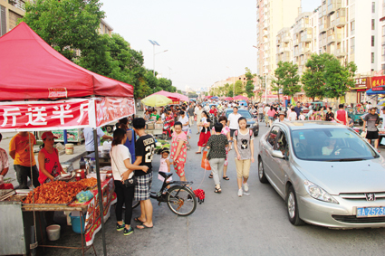 根据记者了解,该路段虽然有两个较大的小区,但是附近却没有正规的农贸市场。不少菜贩、商贩以及大排档经营者在这里看到了商机,自发形成了“骑路市场”。对于该路段的“骑路市场”,不少居民对其是又爱又恨。采访过程中,不少市民告诉记者,由于附近没有农贸市场,每天买菜都要走很远。这里有了市场之后,买菜确实方便多了,每天下午下班的时候顺路就把第二天的菜给买了。但是让人头疼的是,这些摊贩没有规范管理,导致宽阔的路面几乎完全被占据,尤其是下午下班高峰时段,人流加车流一起挤在道路上不仅对道路造成拥挤,而且也带来了交通隐患。