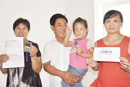 图:老余一家喜领新房钥匙,圆了“安居梦”