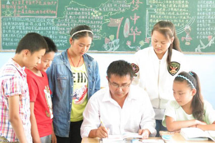 山王小学六年级只有一个班,全班16名学生有近三分之一是留守儿童。这些孩子的父母常年在外打工,与孩子沟通又少,因此,造成部分孩子性格内向。班里有个女生叫张义闽,父母常年外出打工,她与年迈的爷爷奶奶生活。李学梅看到小义闽上课时常发呆,作文里流露出想妈妈的伤感,李老师经常把她带回家,给她辅导功课,陪她玩,慢慢的小义闽变得开朗起来,学习也直线上升,目前是班里的班长,小义闽在作文里这样写道:“我爱老师我爱妈妈,到底更爱哪个叫我难以回答,妈妈如同慈祥的老师,老师好像亲爱的妈妈,我爱老师我爱妈妈,人生道路上她们栽培生命之花,妈妈是第一位启蒙老师,老师是塑造心灵的妈妈……”