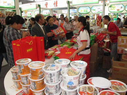 淮南牛肉汤、八公山豆制品、一品香炒货等淮南名优土特产在展会热销