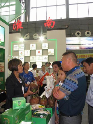 9月12日,2015中国安徽(合肥)农业产业化交易会在合肥滨湖国际会展中心开展,淮南组织了65家龙头企业、合作社、家庭农场参加本届农交会,淮南牛肉汤、八公山豆制品、“江淮老字号”一品香炒货及葡萄鲜品等名优土特产广受欢迎,展台前人群熙熙攘攘,一派热销场面。