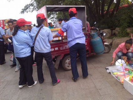 活动之前,该局根据活动当天路段管理现场工作需要划分了工作小组,明确任务分工,实行城管队员、环卫工人、文明劝导员、安防人员、城管志愿者一体联动,及早清理丁山村早菜市摊点,采取“定人、定岗、定责”值守与机动巡查相结合工作机制,加强对风景区道路沿线以及文体中心路口、风景区大门口等重点区域摊群管理,规范摊群经营秩序。在活动中,该局还实施活动全程道路环卫清扫保洁,确保摊群经营有序,市容环境整洁。