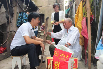近日,家住新淮街道新生村的75岁“三无”老人吴元陶握着爱心人士的手激动地连声道谢。当天,这个街道三位像吴元陶这样的“三无”(无劳动能力、无生活来源、无赡养人和扶养人)老人,收到了“谭鱼头”火锅店送来的月饼、大米、食用油等中秋礼品。老人们告诉记者,这些礼物足够他们度过一个丰盛喜庆的中秋节。
