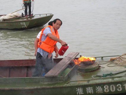 淮南市农委接报后,立即对险情进行等级评估,指挥人员到位,根据险情,宣布进入Ⅳ级响应,并立即指令淮南市渔政处协调海事等部门进行搜救。演练场景中,现场指挥船只、人员陆续到达事发水域,渔政船靠近事故船舶,发现落水人员并救起,渔政人员组织帮助起火渔船灭火,灭火后拖带渔船靠岸。随后参加渔业船舶水上搜救的船舶集结返港,演练结束。
