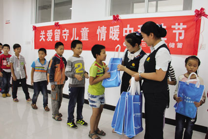 “亲爱的爸爸妈妈,又到中秋节,和往年不一样,今年不仅收到了很多礼物,还有不少叔叔阿姨来看我们……”这是三和镇舜耕村的留守儿童吴仁杰在“爱心卡片”上写给父母的话。为了让留守儿童过一个愉快、祥和的中秋节,9月26日,中国邮政储蓄银行三和营业所的爱心志愿者和社会一些爱心企业一道,为22名留守儿童送去关爱和爱心大礼包。每位留守儿童把心里的话写在“爱心卡片”上,邮寄给正在远方打工的父母,以解相思之情。